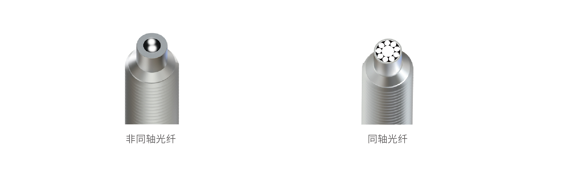 同轴光纤:中间为一根发射光纤四周为接收光纤,检测更加精确,四周排列着接收光线的光纤芯,即使检测物从不同的方向进行检测,误差也很小。